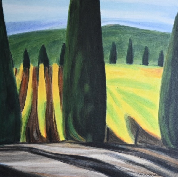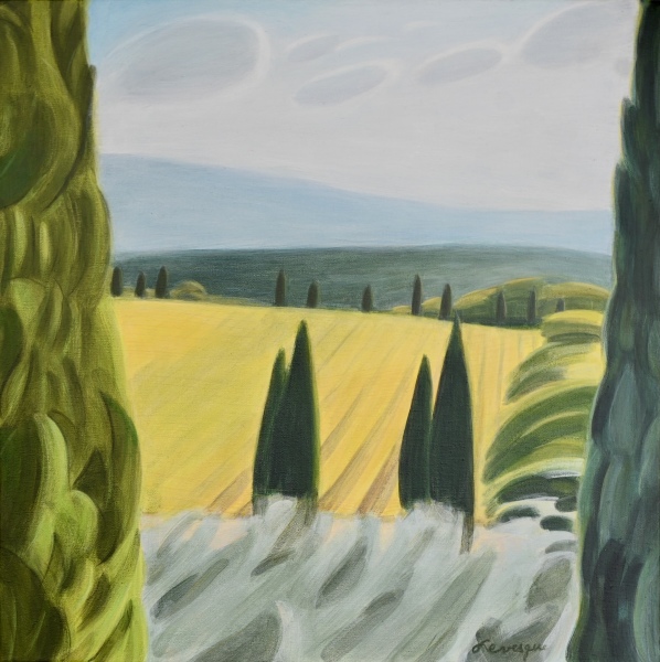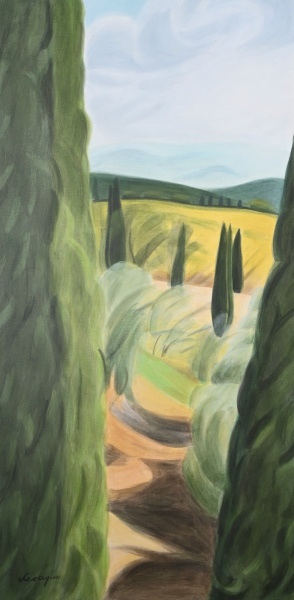 «Après quelques voyages en Italie, dont un fait à l’automne, je m’inspire des cyprès et d’un vignoble de Montalcino pour créer cette mini série en devenir.»